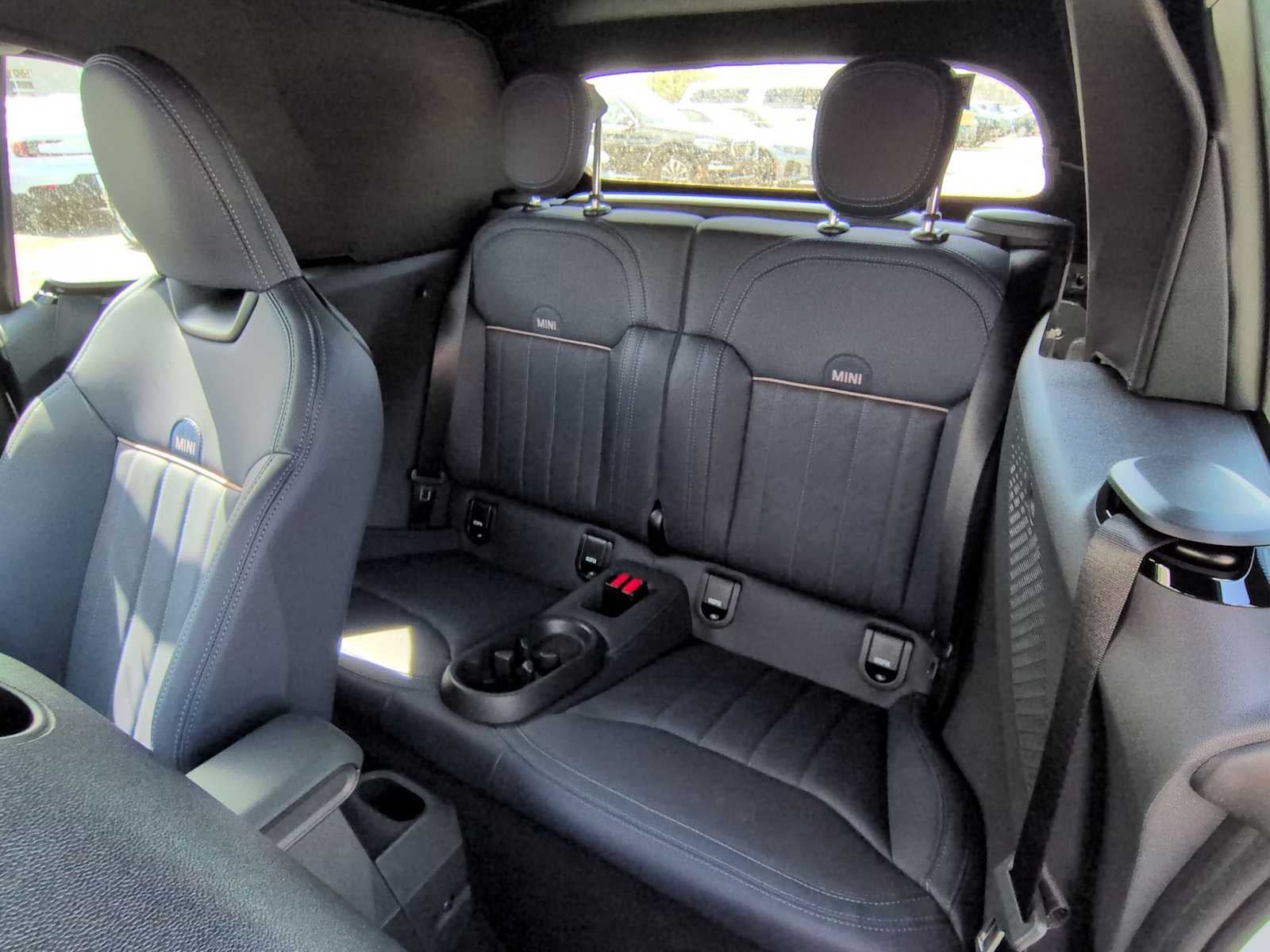 Comfort Package Plus (Auto-Dimming Interior & Exterior Mirrors, Auto-Dimming Rear-View Mirror, Comfort Access Keyless Entry, MINI Navigation AR, Parking Assistant Plus, and Wireless Device Charging), Favoured Style (Black Mirror Caps, Favoured Trim Specific Additional Contents, John Cooper Works Sport Seats, Sports Steering Wheel, Vescin Upholstery, and Wheels: 17 x 7 U-Spoke Vibrant Silver (1KF)), Iconic Trim (ACC Stop & Go + Active Driving Assistant, Active Driving Assistant, harman/kardon Surround Sound System, and Remote Engine Start), 4-Wheel Disc Brakes, 6 Speakers, ABS brakes, Active Driver Seat w/Lumbar Support, Advanced Real-Time Traffic Information, Air Conditioning, Alloy wheels, AM/FM radio: SiriusXM, AM/FM Stereo, Apple CarPlay Compatibility, Auto High-beam Headlights, Auto-dimming door mirrors, Auto-dimming Rear-View mirror, Automatic temperature control, Brake assist, Bumpers: body-color, Convertible roof lining, Convertible roof wind blocker, Delay-off headlights, Driver door bin, Driver vanity mirror, Dual front impact airbags, Dual front side impact airbags, Electronic Stability Control, Emergency communication system: MINI Intelligent Emergency Call, Exterior Parking Camera Rear, Four wheel independent suspension, Front anti-roll bar, Front Bucket Seats, Front Center Armrest w/Storage, Front dual zone A/C, Front reading lights, Fully automatic headlights, Glass rear window, Heads-Up Display, Heated door mirrors, Heated Front Seats, Heated front seats, Heated steering wheel, Illuminated entry, Integrated roll-over protection, Knee airbag, Leather steering wheel, Low tire pressure warning, MINI Assist eCall, MINI Connected, MINI Head-Up Display, MINI Interaction Unit, MINI Navigation, MINI TeleServices, Navigation System, Occupant sensing airbag, Outside temperature display, Overhead console, Panic alarm, Passenger door bin, Passenger vanity mirror, Personal eSIM 5G, Power convertible roof, Power door mirrors, Power Front Seats, Power moonroof, Power steering, Power windows, Radio data system, Rain sensing wipers, Rear anti-roll bar, Rear window defroster, Remote keyless entry, Security system, SiriusXM w/360L & 1 Year Trial Subscription, Speed control, Speed-sensing steering, Speed-Sensitive Wipers, Split folding rear seat, Sport Seats, Sport steering wheel, Steering wheel mounted audio controls, Tachometer, Telescoping steering wheel, Tilt steering wheel, Traction control, Trip computer, Variably intermittent wipers, Vescin/Cloth Upholstery, Wheels: 17 x 7 Parallel Spoke 2-Tone (ZPQ), Wheels: 17 x 7 U-Spoke Grey, and Wheels: 18 x 7 Night Flash Spoke 2-Tone.