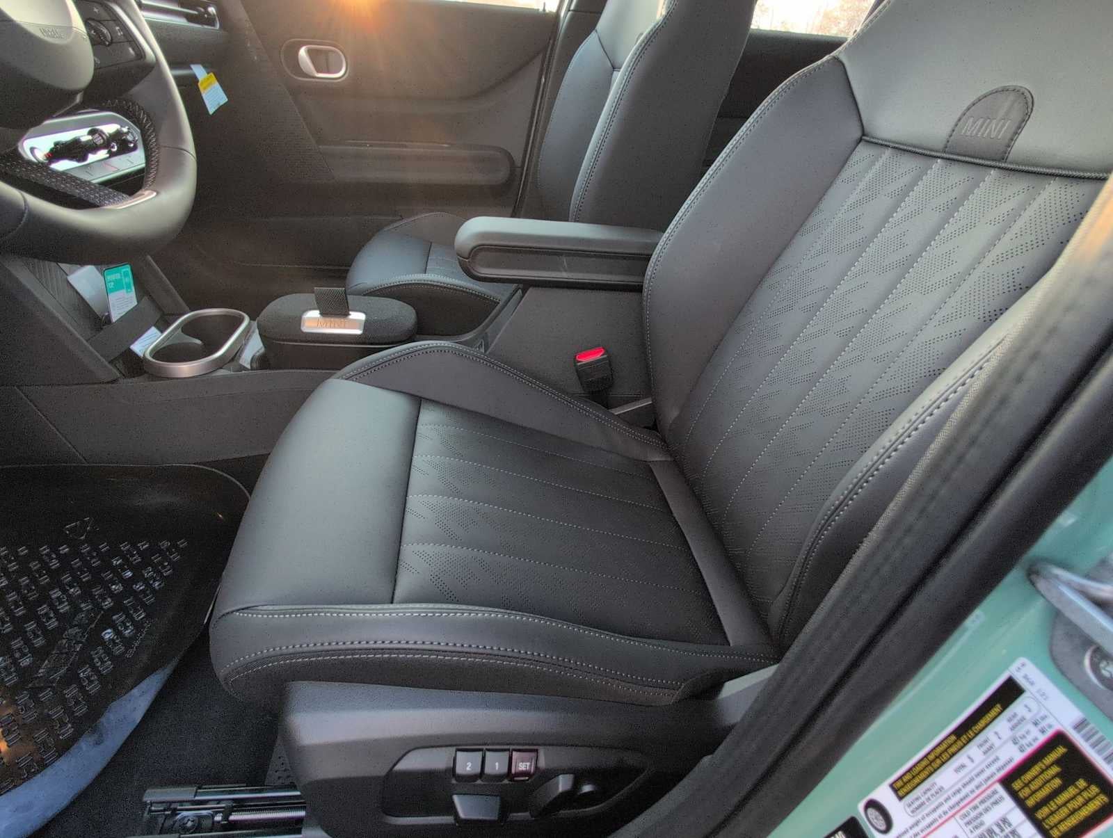 Comfort Package Plus (Auto-Dimming Interior & Exterior Mirrors, Auto-Dimming Rear-View Mirror, Comfort Access Keyless Entry, MINI Navigation AR, Parking Assistant Plus, and Wireless Device Charging), Favoured Style (Body Color Roof, Favoured Trim Specific Additional Contents, Headliner in Anthracite, John Cooper Works Sport Seats, Sports Steering Wheel, Vescin Upholstery, and Wheels: 17 x 7 U-Spoke Vibrant Silver (1KF)), Iconic Trim (ACC Stop & Go + Active Driving Assistant, Active Driving Assistant, Alarm System, harman/kardon Surround Sound System, Interior Camera, and Remote Engine Start), 4-Wheel Disc Brakes, 6 Speakers, ABS brakes, Active Driver Seat w/Lumbar Support, Advanced Real-Time Traffic Information, Air Conditioning, Alloy wheels, AM/FM radio: SiriusXM, AM/FM Stereo, Apple CarPlay Compatibility, Auto High-beam Headlights, Auto-dimming door mirrors, Auto-dimming Rear-View mirror, Automatic temperature control, Black Roof & Mirror Caps, Brake assist, Bumpers: body-color, Delay-off headlights, Driver door bin, Driver vanity mirror, Dual front impact airbags, Dual front side impact airbags, Electronic Stability Control, Emergency communication system: MINI Assist eCall, Exterior Parking Camera Rear, Four wheel independent suspension, Front anti-roll bar, Front Bucket Seats, Front Center Armrest w/Storage, Front dual zone A/C, Front reading lights, Fully automatic headlights, Heads-Up Display, Heated door mirrors, Heated Front Seats, Heated front seats, Heated steering wheel, Illuminated entry, Knee airbag, Leather steering wheel, Low tire pressure warning, MINI Assist eCall, MINI Connected, MINI Head-Up Display, MINI Interaction Unit, MINI Navigation, MINI TeleServices, Navigation System, Occupant sensing airbag, Outside temperature display, Overhead airbag, Overhead console, Panic alarm, Passenger door bin, Passenger vanity mirror, Personal eSIM 5G, Power door mirrors, Power Front Seats, Power moonroof, Power steering, Power windows, Radio data system, Rain sensing wipers, Rear anti-roll bar, Rear window defroster, Rear window wiper, Remote keyless entry, Security system, SiriusXM w/360L & 1 Year Trial Subscription, Speed control, Speed-sensing steering, Speed-Sensitive Wipers, Split folding rear seat, Spoiler, Sport Seats, Sport steering wheel, Steering wheel mounted audio controls, Tachometer, Telescoping steering wheel, Tilt steering wheel, Traction control, Trip computer, Variably intermittent wipers, Vescin/Cloth Upholstery, Wheels: 17 x 7 Parallel Spoke 2-Tone (ZPQ), and Wheels: 17 x 7 U-Spoke Grey.