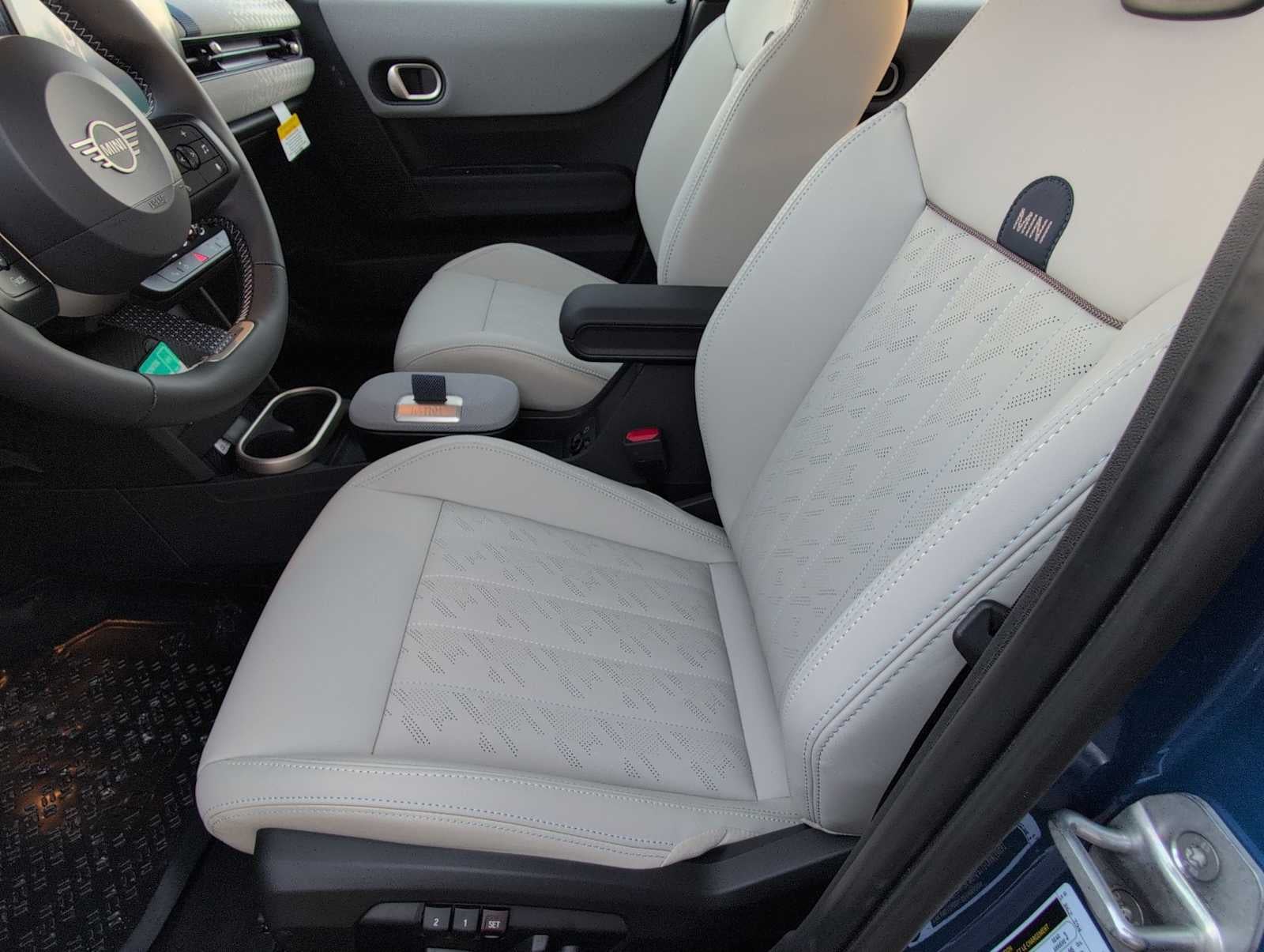 Comfort Package (Auto-Dimming Interior & Exterior Mirrors, Auto-Dimming Rear-View Mirror, Comfort Access Keyless Entry, and Wireless Device Charging), Favoured Style (Body Color Roof, Favoured Trim Specific Additional Contents, Headliner in Anthracite, John Cooper Works Sport Seats, Sports Steering Wheel, Vescin Upholstery, and Wheels: 17 x 7 U-Spoke Vibrant Silver (1KF)), Signature Plus Trim (Active Driving Assistant, Alarm System, and Remote Engine Start), 4-Wheel Disc Brakes, 6 Speakers, ABS brakes, Active Driver Seat w/Lumbar Support, Advanced Real-Time Traffic Information, Air Conditioning, Alloy wheels, AM/FM radio: SiriusXM, AM/FM Stereo, Apple CarPlay Compatibility, Auto High-beam Headlights, Auto-dimming door mirrors, Auto-dimming Rear-View mirror, Automatic temperature control, Brake assist, Bumpers: body-color, Delay-off headlights, Driver door bin, Driver vanity mirror, Dual front impact airbags, Dual front side impact airbags, Electronic Stability Control, Emergency communication system, Exterior Parking Camera Rear, Four wheel independent suspension, Front anti-roll bar, Front Bucket Seats, Front Center Armrest w/Storage, Front dual zone A/C, Front reading lights, Fully automatic headlights, harman/kardon Surround Sound System, Heads-Up Display, Heated door mirrors, Heated Front Seats, Heated front seats, Heated steering wheel, Illuminated entry, Knee airbag, Leather steering wheel, Low tire pressure warning, MINI Assist eCall, MINI Connected, MINI Head-Up Display, MINI Interaction Unit, MINI Navigation, MINI TeleServices, Navigation System, Occupant sensing airbag, Outside temperature display, Overhead airbag, Overhead console, Panic alarm, Passenger door bin, Passenger vanity mirror, Personal eSIM 5G, Power door mirrors, Power Front Seats, Power moonroof, Power steering, Power windows, Radio data system, Rain sensing wipers, Rear anti-roll bar, Rear window defroster, Rear window wiper, Remote keyless entry, Security system, SiriusXM w/360L & 1 Year Trial Subscription, Speed control, Speed-sensing steering, Speed-Sensitive Wipers, Split folding rear seat, Spoiler, Sport Seats, Sport steering wheel, Steering wheel mounted audio controls, Tachometer, Telescoping steering wheel, Tilt steering wheel, Traction control, Trip computer, Variably intermittent wipers, Vescin/Cloth Upholstery, Wheels: 17 x 7 Parallel Spoke 2-Tone (ZPQ), Wheels: 17 x 7 U-Spoke Grey, Wheels: 18 x 7 Slide Spoke Two-Tone, and White Roof & Mirror Caps.