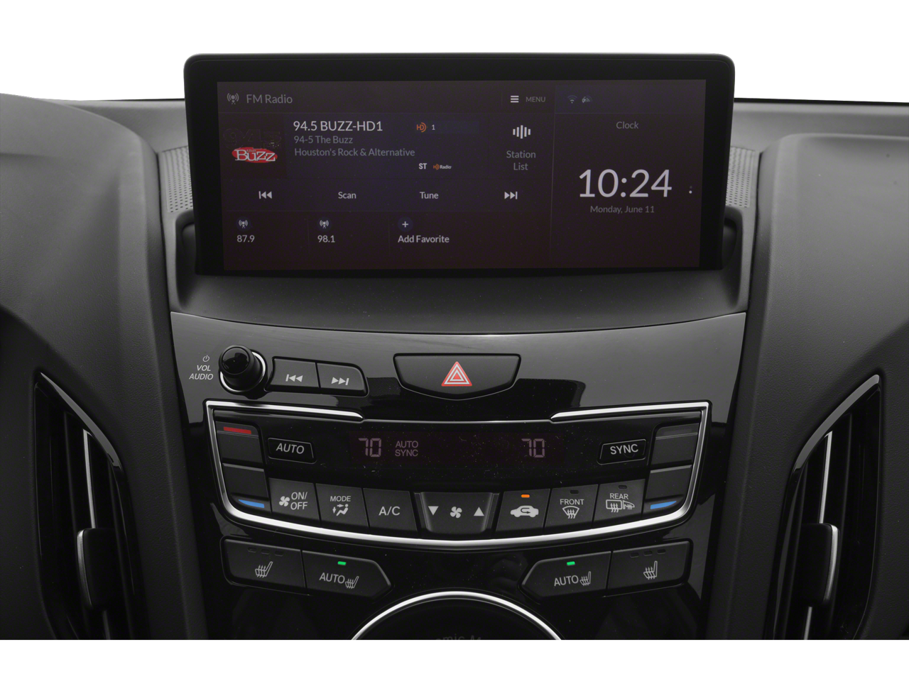 - Radio: Acura Premium Audio System -inc: 9 speakers, true touchpad interface, 10.2" HD dual-content center display, mobile hotspot capability, natural language voice recognition, Apple Carplay, Siri Eyes Free, SMS, MMS text message and email capability, Bluetooth® HandsFreeLink wireless telephone interface, SiriusXM satellite radio, USB audio interface, Bluetooth® streaming audio, MP3/auxiliary input jack, Speed-Sensitive Volume Compensation (SVC), 2 USB charge ports (2.5A charge front seat) and Maintenance Minder system