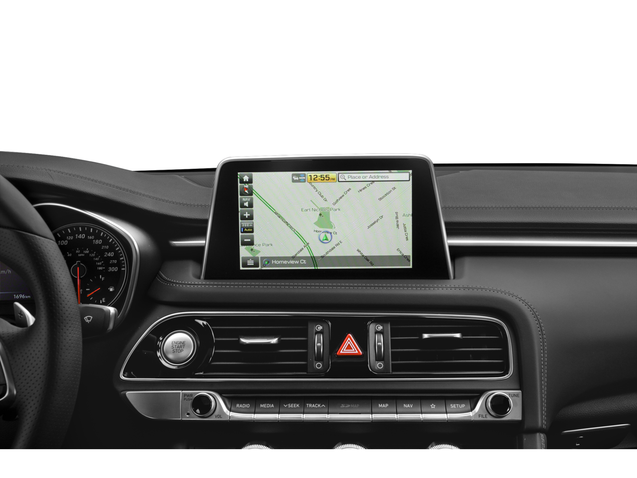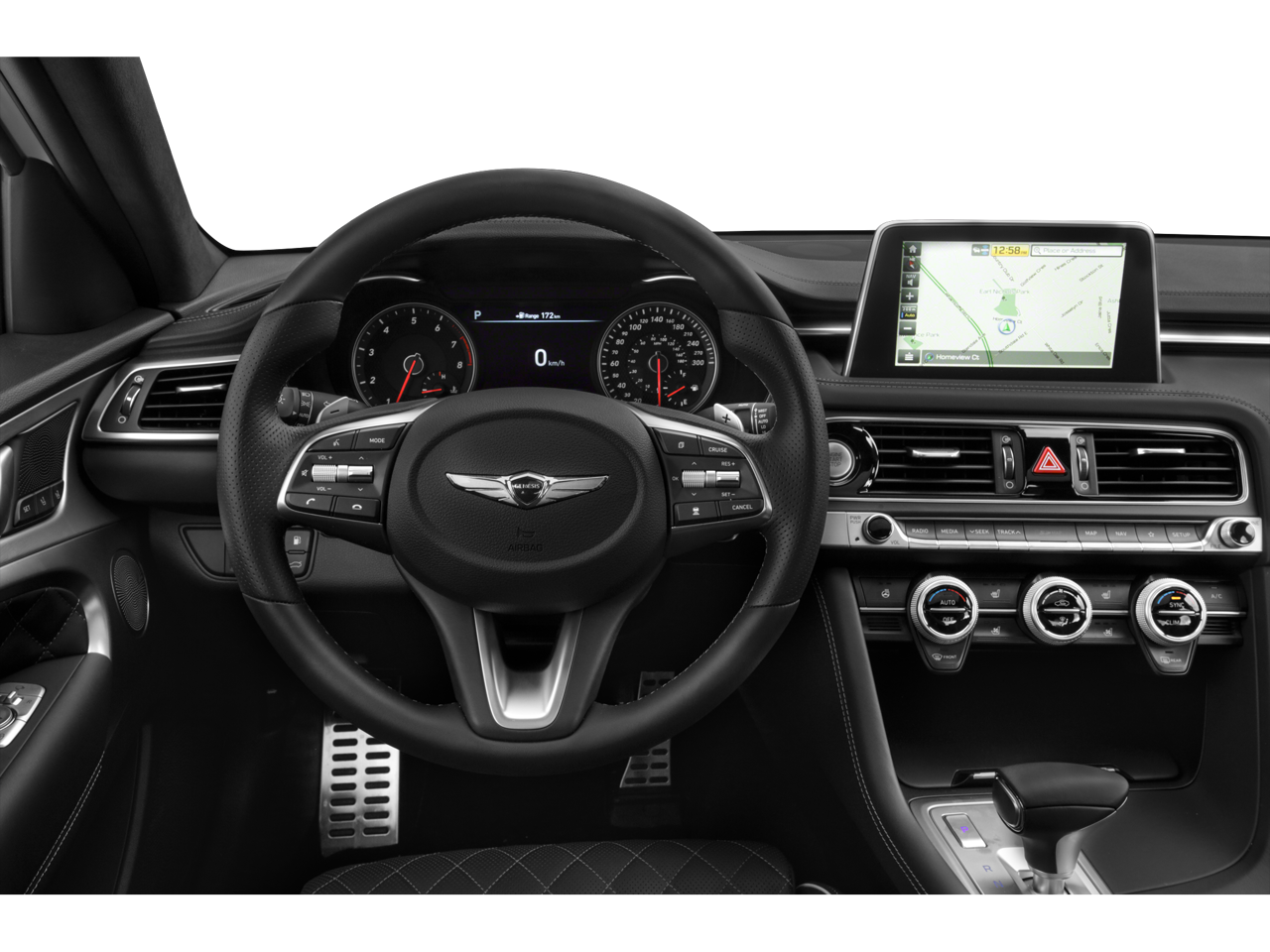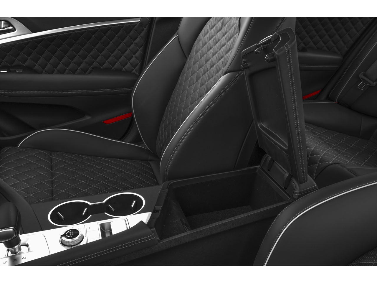 15 Speakers, 4-Wheel Disc Brakes, ABS brakes, Air Conditioning, Alloy wheels, AM/FM radio: SiriusXM, Android Auto & Apple CarPlay, Anti-whiplash front head restraints, Auto High-beam Headlights, Auto-dimming Rear-View mirror, Automatic temperature control, Brake assist, Bumpers: body-color, Delay-off headlights, Driver door bin, Driver vanity mirror, Dual front impact airbags, Dual front side impact airbags, Electronic Stability Control, Emergency communication system: Genesis Connected Services, Exterior Parking Camera Rear, Four wheel independent suspension, Front anti-roll bar, Front Bucket Seats, Front Center Armrest, Front dual zone A/C, Front reading lights, Fully automatic headlights, Garage door transmitter: HomeLink, Heated & Ventilated Front Bucket Seats, Heated door mirrors, Heated front seats, Illuminated entry, Knee airbag, Leather Shift Knob, Leatherette Seat Trim, Low tire pressure warning, Memory seat, Occupant sensing airbag, Outside temperature display, Overhead airbag, Overhead console, Panic alarm, Passenger door bin, Passenger vanity mirror, Power door mirrors, Power driver seat, Power passenger seat, Power steering, Power windows, Radio: AM/FM/HD Radio/SiriusXM Lexicon Audio, Rear anti-roll bar, Rear reading lights, Rear seat center armrest, Rear window defroster, Remote keyless entry, Security system, Speed control, Speed-Sensitive Wipers, Split folding rear seat, Steering wheel memory, Steering wheel mounted audio controls, Tachometer, Telescoping steering wheel, Tilt steering wheel, Traction control, Trip computer, Turn signal indicator mirrors, Variably intermittent wipers, Ventilated front seats, and Wheels: 19 x 8.0J Fr. & 19 x 8.5J Rr. Alloy.