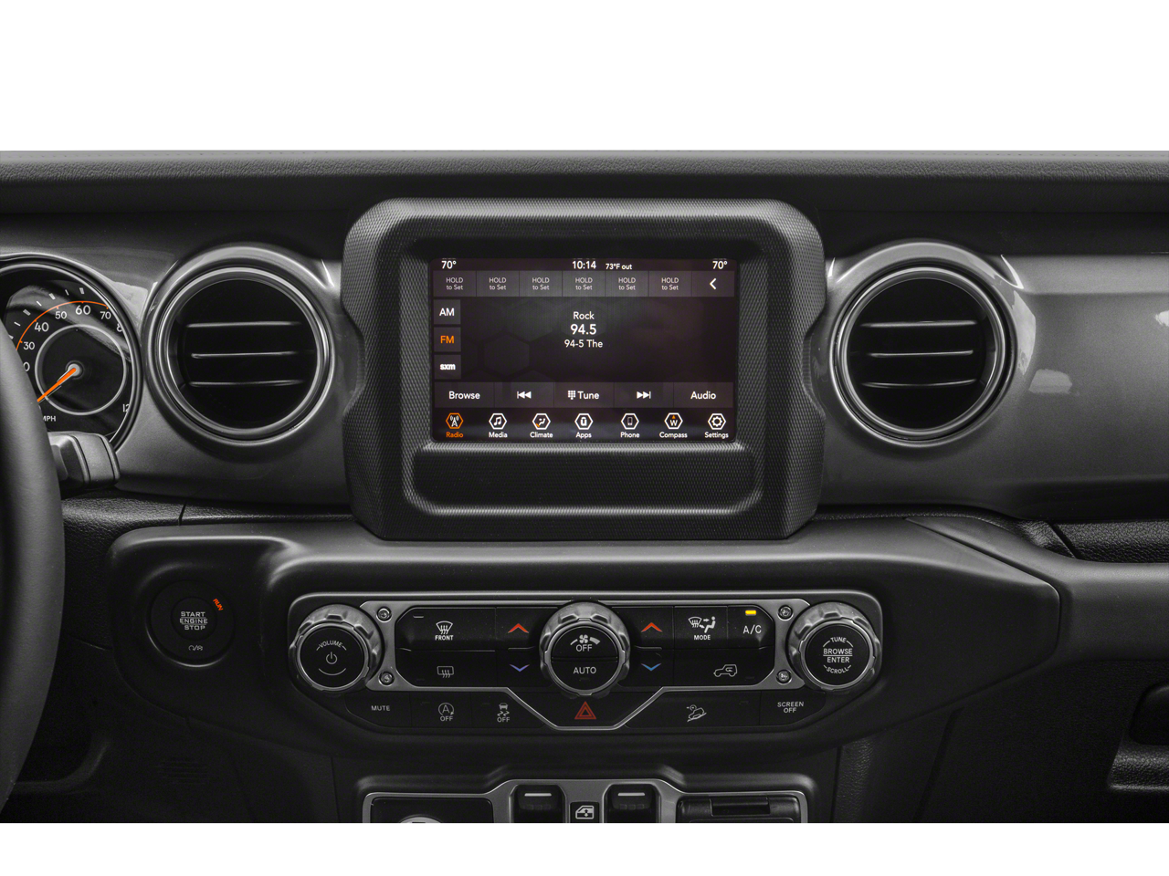 8.4 Radio & Premium Audio Group (1-Year SiriusXM Guardian Trial, 4G LTE Wi-Fi Hot Spot, 5-Year SiriusXM Traffic Service, 5-Year SiriusXM Travel Link Service, 8.4 Touchscreen Display, Alpine Premium Audio System, Auto-Dimming Rear-View Mirror, Emergency/Assistance Call, For Details, Visit DriveUconnect.com, GPS Navigation, HD Radio, Radio: Uconnect 4C Nav w/8.4 Display, SiriusXM Traffic Plus, and SiriusXM Travel Link), Cold Weather Group (Heated Front Seats and Heated Steering Wheel), Dual Top Group (Black 3-Piece Hard Top, Freedom Panel Storage Bag, No Soft Top, Premium Black Sunrider Soft Top w/Dual Top Group, Rear Window Defroster, and Rear Window Wiper/Washer), LED Lighting Group (Daytime Running Lamps LED Accents, Front LED Fog Lamps, LED Reflector Headlamps, and LED Taillamps), Quick Order Package 24R, Safety Group (Blind Spot & Cross Path Detection and ParkSense Rear Park Assist System), Trailer Tow & HD Electrical Group (240 Amp Alternator, 7 & 4 Pin Wiring Harness, 700 Amp Maintenance Free Battery, Auxiliary Switches, and Class II Receiver Hitch), 4-Wheel Disc Brakes, 4.10 Rear Axle Ratio, 8 Speakers, ABS brakes, Air Conditioning, Alloy wheels, AM/FM radio: SiriusXM, Apple CarPlay/Android Auto, Automatic temperature control, Aux Battery, BF Goodrich Brand Tires, Body Color 3-Piece Hard Top, Body Color Fender Flares, Brake assist, Compass, Delay-off headlights, Driver door bin, Driver vanity mirror, Dual front impact airbags, Dual front side impact airbags, Electronic Stability Control, Front anti-roll bar, Front Bucket Seats, Front Center Armrest w/Storage, Front dual zone A/C, Front fog lights, Front License Plate Bracket, Front reading lights, Fully automatic headlights, Garage door transmitter, Heated door mirrors, Illuminated entry, Integrated roll-over protection, Leather steering wheel, Low tire pressure warning, MOPAR All-Weather Floor Mats (DISC), Non-Lock Fuel Cap w/o Discriminator, Occupant sensing airbag, Outside temperature display, Panic alarm, ParkView Rear Back-Up Camera, Passenger door bin, Passenger vanity mirror, Performance Suspension, Power door mirrors, Power steering, Power windows, Premium Cloth Low-Back Bucket Seats, Radio data system, Radio: Uconnect 4 w/7 Display, Rear anti-roll bar, Rear reading lights, Remote keyless entry, Remote Proximity Keyless Entry, Remote Start System, Security system, Speed control, Split folding rear seat, Steering wheel mounted audio controls, Stop-Start Dual Battery System, Tachometer, Telescoping steering wheel, Tilt steering wheel, Traction control, Trip computer, Variably intermittent wipers, Voltmeter, and Wheels: 17 x 7.5 Machined w/Black PocketS.