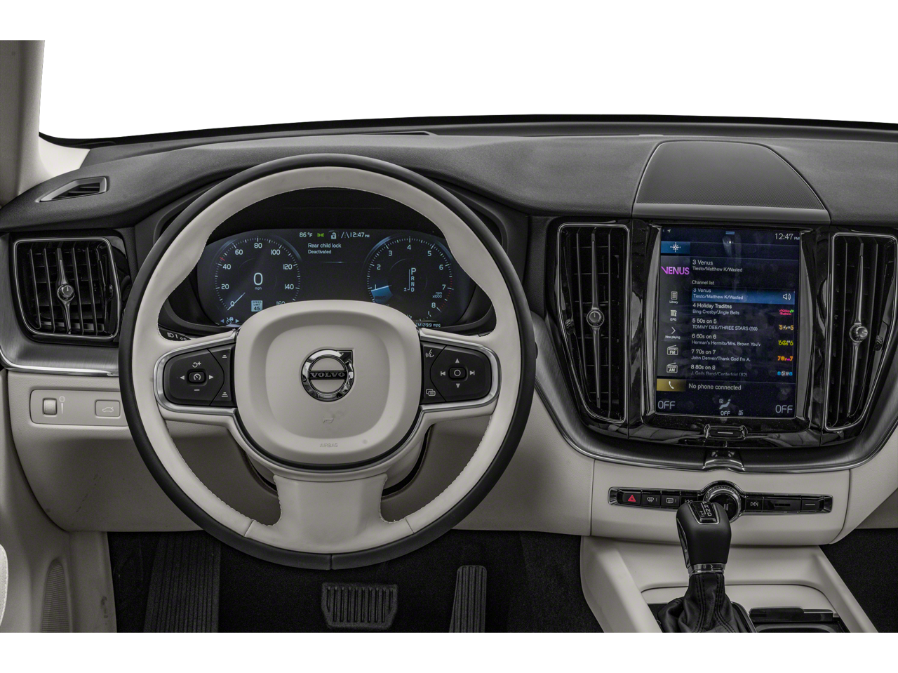 4-Wheel Disc Brakes, ABS brakes, Air Conditioning, Alloy wheels, AM/FM radio: SiriusXM, Anti-whiplash front head restraints, Apple CarPlay/Android Auto, Auto High-beam Headlights, Auto-dimming Rear-View mirror, Automatic temperature control, Brake assist, Bumpers: body-color, Delay-off headlights, Driver door bin, Driver vanity mirror, Dual front impact airbags, Dual front side impact airbags, Electronic Stability Control, Emergency communication system: Volvo On-Call, Enhanced Premium Sound System, Exterior Parking Camera Rear, Four wheel independent suspension, Front anti-roll bar, Front Bucket Seats, Front Center Armrest, Front dual zone A/C, Front reading lights, Fully automatic headlights, Heated door mirrors, Heated Front Comfort Seats, Heated front seats, Illuminated entry, Knee airbag, Leather Seating Surfaces, Leather Shift Knob, Low tire pressure warning, Memory seat, Occupant sensing airbag, Outside temperature display, Overhead airbag, Panic alarm, Passenger door bin, Passenger vanity mirror, Power door mirrors, Power driver seat, Power Liftgate, Power moonroof, Power passenger seat, Power steering, Power windows, Premium audio system: Sensus Connect, Radio data system, Radio: High Performance Audio System, Rain sensing wipers, Rear anti-roll bar, Rear fog lights, Rear Parking Sensors, Rear reading lights, Rear seat center armrest, Rear window defroster, Rear window wiper, Remote keyless entry, Security system, Speed control, Split folding rear seat, Spoiler, Steering wheel mounted audio controls, Tachometer, Telescoping steering wheel, Tilt steering wheel, Traction control, Trip computer, Turn signal indicator mirrors, Variably intermittent wipers, and Wheels: 18 5-Y-Spoke Silver Alloy.