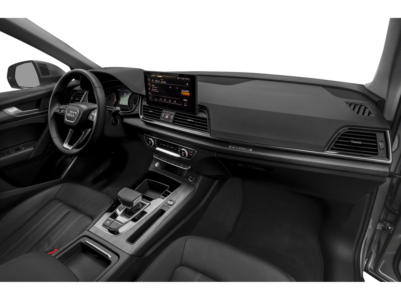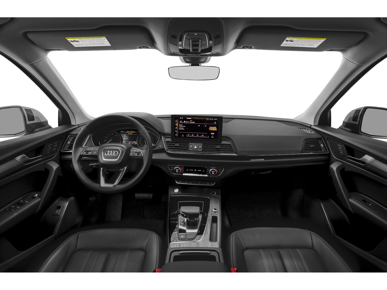 Convenience Package (Audi Advanced Key, Auto-Dimming Power Folding Exterior Mirrors, Driver Seat Memory, Heated Steering Wheel, and SiriusXM All Access Service), Enhanced Premium Sound System, Exterior Parking Camera Rear, Front Bucket Seats, Heated front seats, Leather Seating Surfaces, Power Liftgate, Power passenger seat, Roof rack, Split folding rear seat, Spoiler, Steering wheel mounted audio controls, Turn signal indicator mirrors, 4-Wheel Disc Brakes, 5.302 Axle Ratio, ABS brakes, Air Conditioning, Alloy wheels, AM/FM radio, Auto High-beam Headlights, Auto-dimming Rear-View mirror, Automatic temperature control, Brake assist, Bumpers: body-color, Compass, Delay-off headlights, Driver door bin, Driver vanity mirror, Dual front impact airbags, Dual front side impact airbags, Electronic Stability Control, Emergency communication system: Audi connect CARE, Four wheel independent suspension, Front anti-roll bar, Front Center Armrest, Front dual zone A/C, Front fog lights, Front reading lights, Garage door transmitter: HomeLink, Genuine wood console insert, Genuine wood dashboard insert, Genuine wood door panel insert, Heated 8-Way Power Front Bucket Seats, Heated door mirrors, Illuminated entry, Leather Shift Knob, Low tire pressure warning, Occupant sensing airbag, Outside temperature display, Overhead airbag, Overhead console, Panic alarm, Passenger door bin, Passenger vanity mirror, Power door mirrors, Power driver seat, Power steering, Power windows, Radio data system, Radio: Audi Sound System, Rain sensing wipers, Rear air conditioning, Rear anti-roll bar, Rear fog lights, Rear reading lights, Rear seat center armrest, Rear window defroster, Rear window wiper, Remote keyless entry, Security system, Speed control, Speed-sensing steering, Speed-Sensitive Wipers, Tachometer, Telescoping steering wheel, Tilt steering wheel, Traction control, Trip computer, Variably intermittent wipers, and Wheels: 18 5-Arm-Star Design.