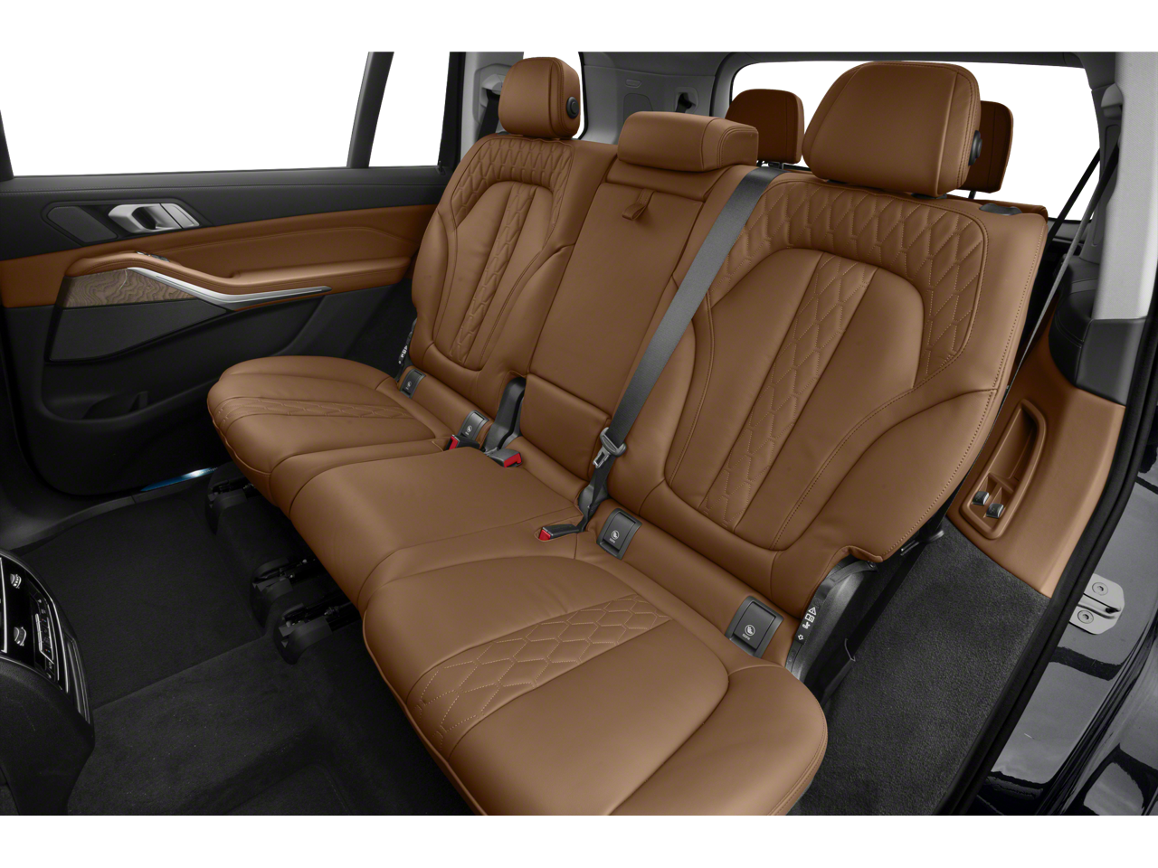Connected Package Pro, 3.64 Axle Ratio, 3rd row seats: split-bench, 4-Wheel Disc Brakes, 5-Zone Automatic Climate Control, ABS brakes, Air Conditioning, Alloy wheels, AM/FM radio: SiriusXM with 360L, AM/FM Stereo, Anthracite Alcantara Headliner, Apple CarPlay & Android Auto Compatibility, Apple CarPlay Compatibility, Auto High-beam Headlights, Auto tilt-away steering wheel, Auto-dimming door mirrors, Auto-dimming Rear-View mirror, Auto-leveling suspension, Automatic temperature control, BMW Assist eCall, BMW TeleServices, Brake assist, Bumpers: body-color, Compass, ConnectedDrive Services, Delay-off headlights, Drive Recorder, Driver door bin, Driver vanity mirror, Dual front impact airbags, Dual front side impact airbags, Electronic Stability Control, Emergency communication system: BMW Assist eCall, Enhanced Premium Sound System, Exterior Parking Camera Rear, Four wheel independent suspension, Front & Rear Heated Seats, Front anti-roll bar, Front Bucket Seats, Front Center Armrest, Front dual zone A/C, Front fog lights, Front Massaging Seats, Front reading lights, Front Ventilated Seats, Fully automatic headlights, Garage door transmitter, Genuine wood console insert, Genuine wood dashboard insert, Genuine wood door panel insert, Gesture Control, Glass Controls, harman/kardon Surround Sound System, Head restraints memory, Head-Up Display, Heated & Cooled Cup Holders, Heated door mirrors, Heated front seats, Heated Sport Seats, Heated steering wheel, Hi-Fi Sound System, Illuminated entry, Knee airbag, Leather Dashboard, Leather Shift Knob, Live Cockpit Pro w/Navi, Low tire pressure warning, Lumbar Support, Memory seat, Multi-Contour Seats, Navigation System, Occupant sensing airbag, Outside temperature display, Overhead airbag, Panic alarm, Panoramic Sky Lounge LED Roof, Parking Assistant Plus, Passenger door bin, Passenger vanity mirror, Power adjustable front head restraints, Power door mirrors, Power driver seat, Power Front Seats, Power moonroof, Power passenger seat, Power steering, Power windows, Radio data system, Rain sensing wipers, Rear air conditioning, Rear anti-roll bar, Rear dual zone A/C, Rear Electric Side Window Shades, Rear reading lights, Rear seat center armrest, Rear window defroster, Rear window wiper, Rear-View Camera, Reclining 3rd row seat, Remote keyless entry, Roof rack: rails only, Second-Row Captains Chairs, Security system, SensaTec Upholstery, SiriusXM w/360L, Soft-Close Automatic Doors, Speed control, Speed-sensing steering, Speed-Sensitive Wipers, Split folding rear seat, Spoiler, Sport steering wheel, Steering wheel memory, Steering wheel mounted audio controls, Surround View w/3D View, Tachometer, Telescoping steering wheel, Tilt steering wheel, Traction control, Trip computer, Turn signal indicator mirrors, Variably intermittent wipers, Wheels: 21 x 9.5 Y-Spoke Bi-Color, and Wheels: 22 x 9.5 Fr & 22 x 10.5 Rr Y-Spoke.