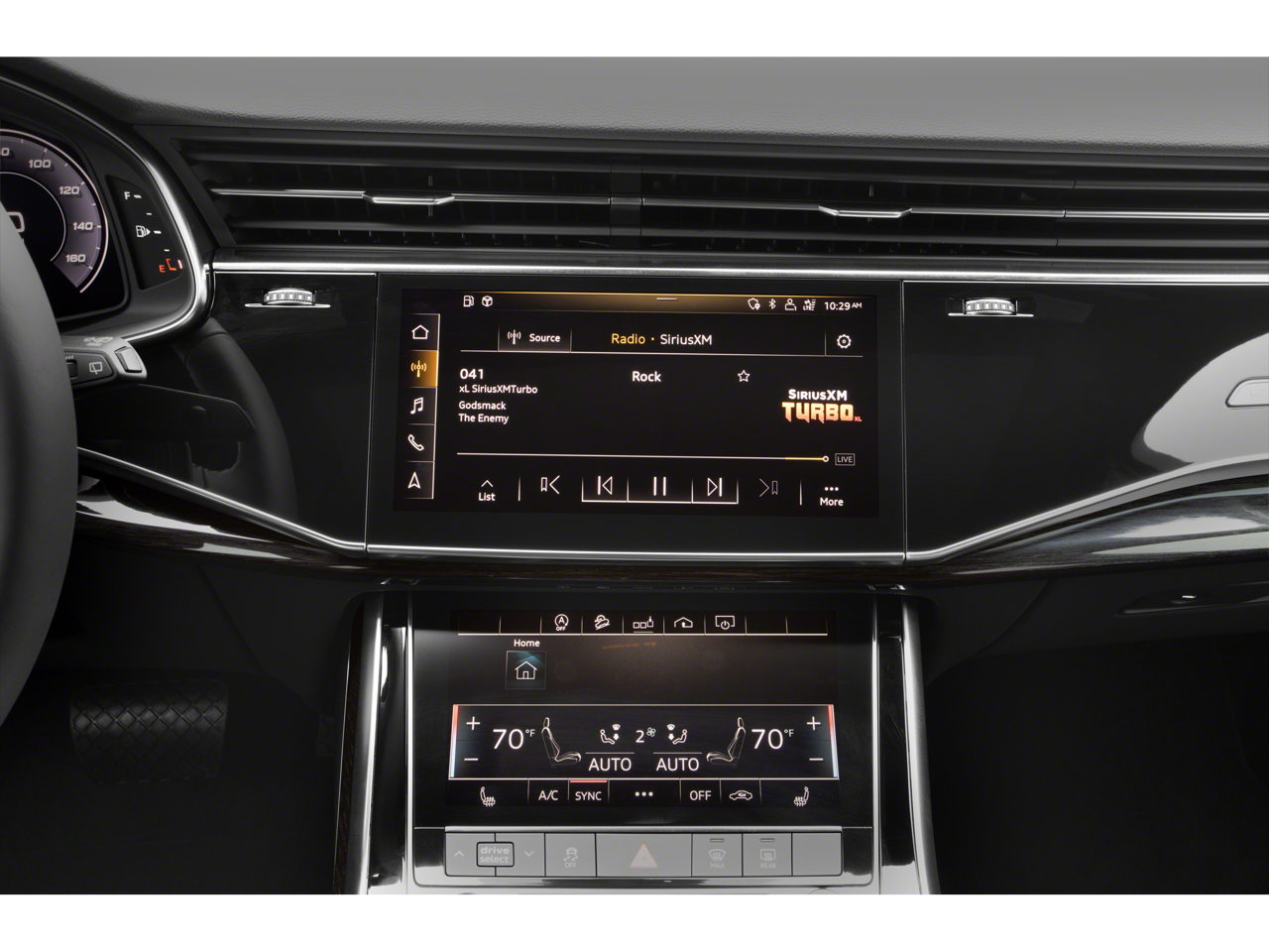 3.204 Axle Ratio, 3rd row seats: bench, 4-Wheel Disc Brakes, ABS brakes, Air Conditioning, Alloy wheels, AM/FM radio: SiriusXM, Audi smartphone interface (Apple CarPlay/Android Auto), Auto High-beam Headlights, Auto-dimming door mirrors, Auto-dimming Rear-View mirror, Automatic temperature control, Brake assist, Bumpers: body-color, Compass, Delay-off headlights, Driver door bin, Driver vanity mirror, Dual front impact airbags, Dual front side impact airbags, Electronic Stability Control, Emergency communication system: Audi connect CARE, PRIME & PLUS, Enhanced Premium Sound System, Exterior Parking Camera Rear, Four wheel independent suspension, Front anti-roll bar, Front Bucket Seats, Front Center Armrest, Front dual zone A/C, Front fog lights, Front reading lights, Fully automatic headlights, Garage door transmitter: HomeLink, Genuine wood door panel insert, Heated door mirrors, Heated Front Bucket Seats, Heated front seats, Illuminated entry, Leather Seating Surfaces, Leather Shift Knob, Leather steering wheel, Low tire pressure warning, Memory seat, Navigation system: Audi MMI Navigation plus with Touch Response, Occupant sensing airbag, Outside temperature display, Overhead airbag, Overhead console, Panic alarm, Passenger door bin, Passenger vanity mirror, Power door mirrors, Power driver seat, Power Liftgate, Power moonroof: Panoramic, Power passenger seat, Power steering, Power windows, Radio data system, Radio: Audi Sound System, Rain sensing wipers, Rear air conditioning, Rear anti-roll bar, Rear fog lights, Rear reading lights, Rear seat center armrest, Rear side impact airbag, Rear window defroster, Rear window wiper, Reclining 3rd row seat, Remote keyless entry, Roof rack: rails only, Security system, Speed control, Speed-sensing steering, Split folding rear seat, Spoiler, Steering wheel memory, Steering wheel mounted audio controls, Tachometer, Telescoping steering wheel, Tilt steering wheel, Traction control, Trip computer, Turn signal indicator mirrors, Variably intermittent wipers, and Wheels: 19 5-Arm-Star Design.