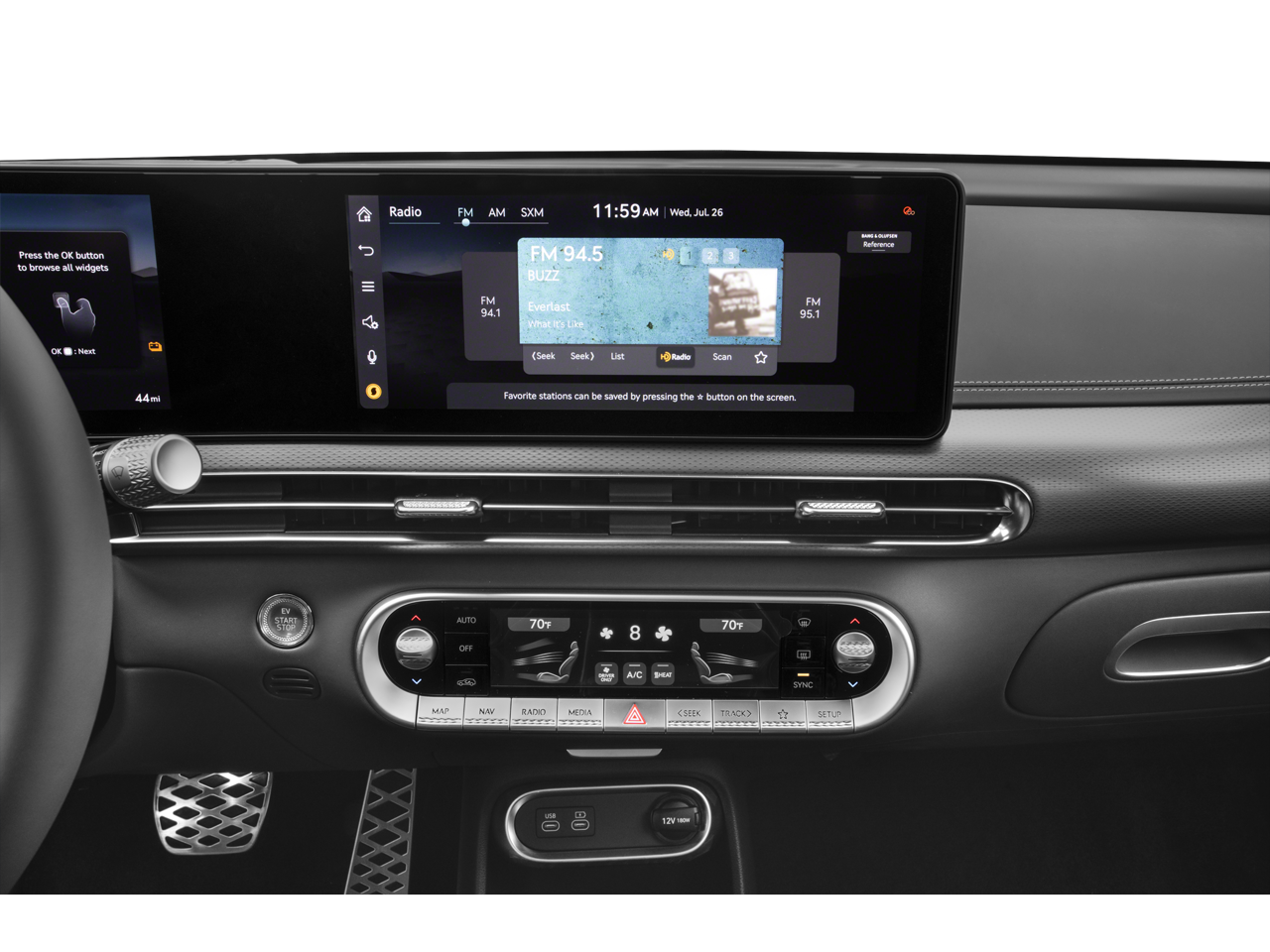 - Radio: AM/FM/XM/HD Bang & Olufsen Premium Audio System -inc: 12.3" HD LCD display screen, premium navigation system w/cloud connected platform (cloud profiles, connected routing, dynamic voice recognition and OTA updates), SiriusXM Radio, 17 speakers, 14-channel amplifier w/1,400 watts max output, road active noise control, Apple CarPlay and Android Auto, Bluetooth® hands-free phone system w/audio streaming, Genesis Connected Services, 4 USB ports and 12v power outlets