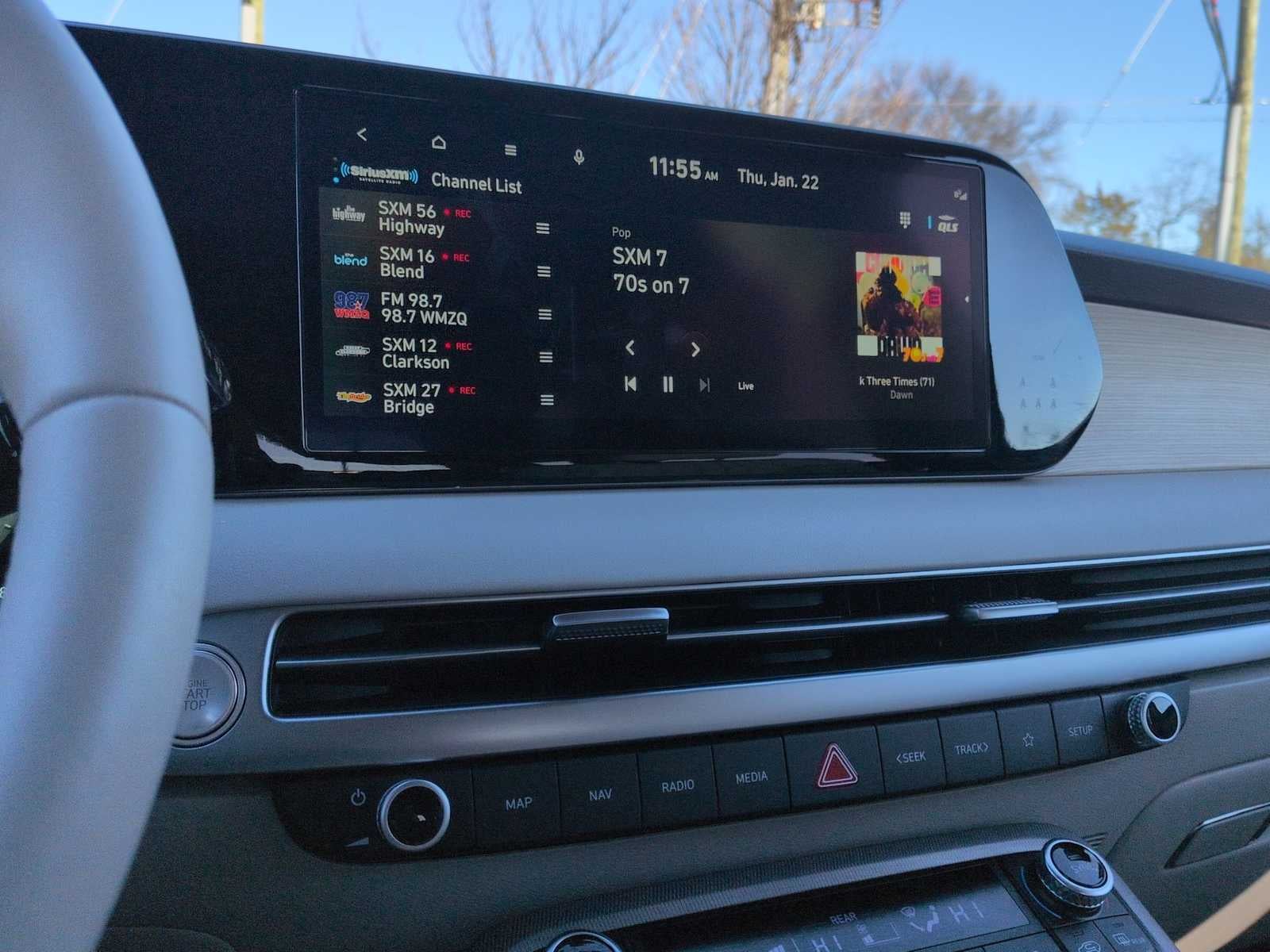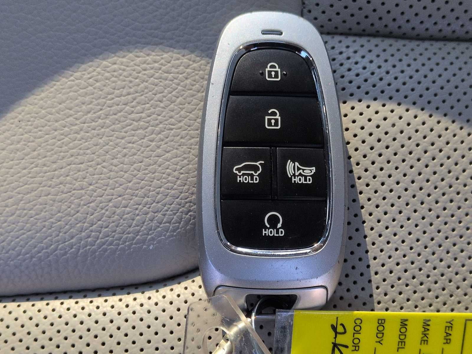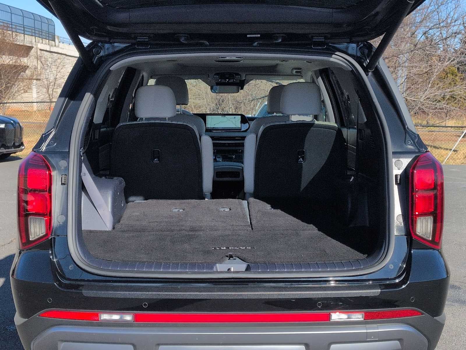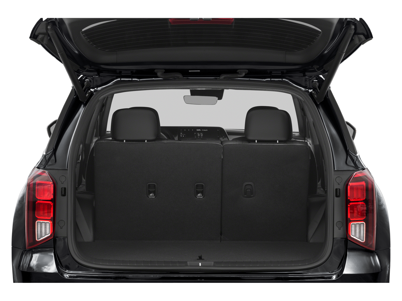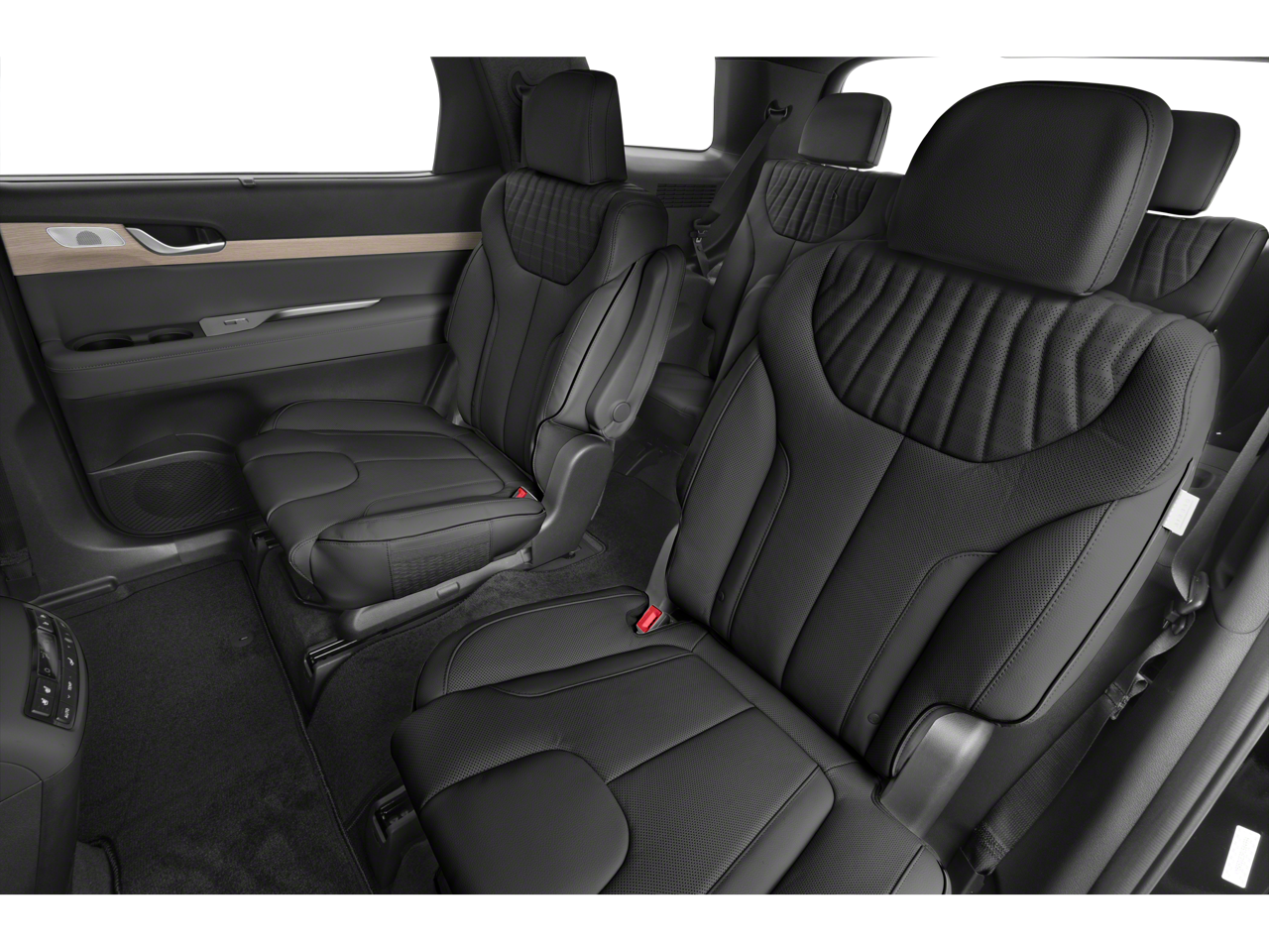 Option Group 01, 3rd row seats: split-bench, Apple CarPlay & Android Auto, Exterior Parking Camera Rear, Front Bucket Seats, Heads-Up Display, Heated & Ventilated Front Bucket Seats, Heated front seats, Heated rear seats, Leather Seat Trim, Memory seat, Navigation System, Power Liftgate, Power moonroof, Power passenger seat, Reclining 3rd row seat, Split folding rear seat, Spoiler, Steering wheel mounted audio controls, Ventilated front seats, Ventilated rear seats, Wheels: 20 x 7.5J Alloy, 12 Speakers, 3.648 Axle Ratio, 4-Wheel Disc Brakes, ABS brakes, Air Conditioning, Alloy wheels, AM/FM radio: SiriusXM, Auto High-beam Headlights, Auto-dimming door mirrors, Auto-dimming Rear-View mirror, Auto-leveling suspension, Automatic temperature control, Brake assist, Bumpers: body-color, Cargo Cover/Screen, Cargo Net, Cargo Tray, Carpeted Floor Mats, Compass, Delay-off headlights, Driver door bin, Driver vanity mirror, Dual front impact airbags, Dual front side impact airbags, Electronic Stability Control, Emergency communication system: Blue Link Connected Car Service (3-year complimentary subscription), Four wheel independent suspension, Front anti-roll bar, Front Center Armrest, Front dual zone A/C, Front reading lights, Fully automatic headlights, Garage door transmitter: HomeLink, harman/kardon® Speakers, Heated door mirrors, Heated steering wheel, Illuminated entry, Knee airbag, Low tire pressure warning, Occupant sensing airbag, Outside temperature display, Overhead airbag, Overhead console, Panic alarm, Passenger door bin, Passenger vanity mirror, Power door mirrors, Power driver seat, Power steering, Power windows, Radio data system, Radio: AM/FM/MP3 Premium Audio System, Rain sensing wipers, Rear air conditioning, Rear anti-roll bar, Rear audio controls, Rear Bumper Applique, Rear reading lights, Rear side impact airbag, Rear window defroster, Rear window wiper, Remote keyless entry, Security system, Speed control, Speed-sensing steering, Splash Trim, Tachometer, Telescoping steering wheel, Tilt steering wheel, Traction control, Trip computer, Turn signal indicator mirrors, and Variably intermittent wipers.