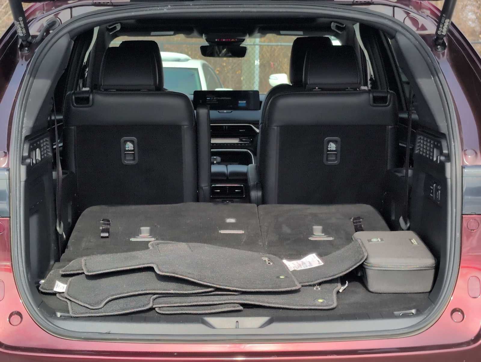 12 Speakers, 3.692 Axle Ratio, 3rd row seats: bench, 4-Wheel Disc Brakes, ABS brakes, Air Conditioning, Alloy wheels, AM/FM radio: SiriusXM, Artisan Red Premium Paint Charge, Auto High-beam Headlights, Auto-dimming door mirrors, Auto-dimming Rear-View mirror, Automatic temperature control, Brake assist, Bumpers: body-color, Compass, Delay-off headlights, Driver door bin, Driver vanity mirror, Dual front impact airbags, Dual front side impact airbags, E911 Automatic Emergency Notification, Electronic Stability Control, Emergency communication system: MAZDA CONNECT, Four wheel independent suspension, Front anti-roll bar, Front Bucket Seats, Front Center Armrest w/Storage, Front dual zone A/C, Front reading lights, Fully automatic headlights, Garage door transmitter: HomeLink, Heads-Up Display, Heated door mirrors, Heated front seats, Heated rear seats, Heated steering wheel, Heated/Ventilated Front Bucket Seats, Illuminated entry, Infotainment System Voice Command, Knee airbag, Leather Shift Knob, Leather steering wheel, Low tire pressure warning, Mazda Connected Services, Mazda Navigation System, Memory seat, Nappa Leather Seat Trim, Navigation system: MAZDA CONNECT, Occupant sensing airbag, Outside temperature display, Overhead airbag, Overhead console, Pandora Internet Radio Integration, Panic alarm, Passenger door bin, Passenger vanity mirror, Power door mirrors, Power driver seat, Power Liftgate, Power moonroof, Power passenger seat, Power steering, Power windows, Radio Broadcast Data System Program Information, Radio data system, Radio: AM/FM w/Bose Audio Sound System, Rain sensing wipers, Rear air conditioning, Rear anti-roll bar, Rear reading lights, Rear window defroster, Rear window wiper, Remote keyless entry, Roadside Assistance Kit, Security system, SMS Text Msg Audio Delivery & Reply, Speed control, Speed-sensing steering, Split folding rear seat, Spoiler, Steering wheel mounted audio controls, Tachometer, Telescoping steering wheel, Tilt steering wheel, Traction control, Trip computer, Turn signal indicator mirrors, Variably intermittent wipers, Ventilated front seats, and Wheels: 21 x 9.5J Aluminum Alloy.