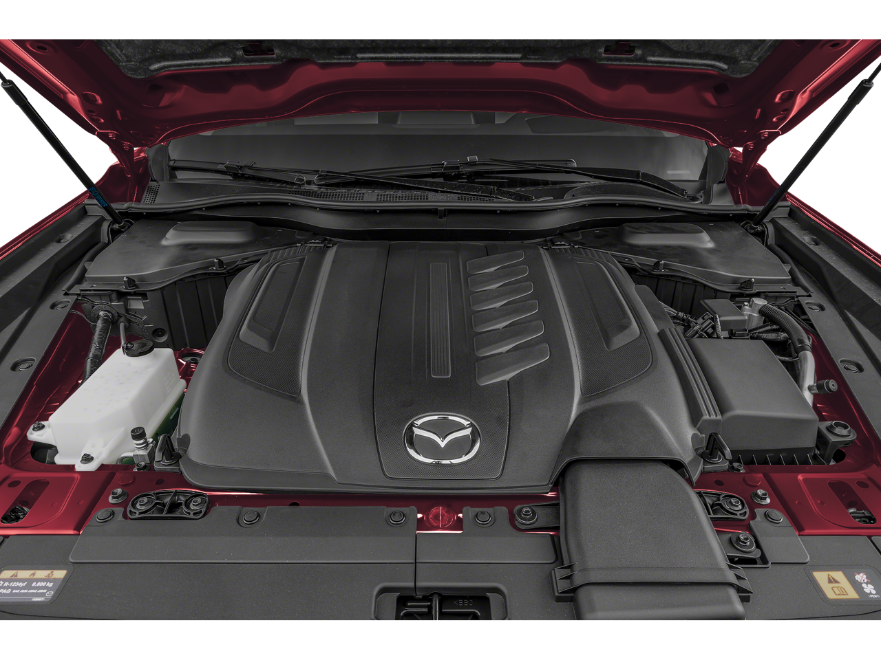 12 Speakers, 3.692 Axle Ratio, 3rd row seats: bench, 4-Wheel Disc Brakes, ABS brakes, Air Conditioning, Alloy wheels, AM/FM radio: SiriusXM, Artisan Red Premium Paint Charge, Auto High-beam Headlights, Auto-dimming door mirrors, Auto-dimming Rear-View mirror, Automatic temperature control, Brake assist, Bumpers: body-color, Compass, Delay-off headlights, Driver door bin, Driver vanity mirror, Dual front impact airbags, Dual front side impact airbags, E911 Automatic Emergency Notification, Electronic Stability Control, Emergency communication system: MAZDA CONNECT, Four wheel independent suspension, Front anti-roll bar, Front Bucket Seats, Front Center Armrest w/Storage, Front dual zone A/C, Front reading lights, Fully automatic headlights, Garage door transmitter: HomeLink, Heads-Up Display, Heated door mirrors, Heated front seats, Heated rear seats, Heated steering wheel, Heated/Ventilated Front Bucket Seats, Illuminated entry, Infotainment System Voice Command, Knee airbag, Leather Shift Knob, Leather steering wheel, Low tire pressure warning, Mazda Connected Services, Mazda Navigation System, Memory seat, Nappa Leather Seat Trim, Navigation system: MAZDA CONNECT, Occupant sensing airbag, Outside temperature display, Overhead airbag, Overhead console, Pandora Internet Radio Integration, Panic alarm, Passenger door bin, Passenger vanity mirror, Power door mirrors, Power driver seat, Power Liftgate, Power moonroof, Power passenger seat, Power steering, Power windows, Radio Broadcast Data System Program Information, Radio data system, Radio: AM/FM w/Bose Audio Sound System, Rain sensing wipers, Rear air conditioning, Rear anti-roll bar, Rear reading lights, Rear window defroster, Rear window wiper, Remote keyless entry, Roadside Assistance Kit, Security system, SMS Text Msg Audio Delivery & Reply, Speed control, Speed-sensing steering, Split folding rear seat, Spoiler, Steering wheel mounted audio controls, Tachometer, Telescoping steering wheel, Tilt steering wheel, Traction control, Trip computer, Turn signal indicator mirrors, Variably intermittent wipers, Ventilated front seats, and Wheels: 21 x 9.5J Aluminum Alloy.