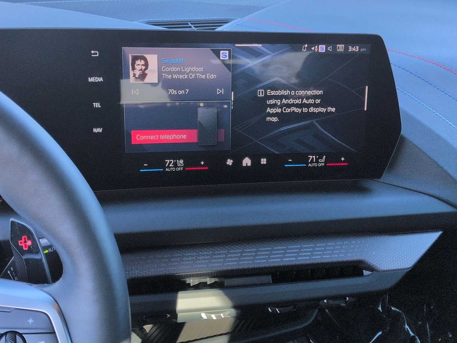 ABS brakes, Alloy wheels, Compass, Electronic Stability Control, Front dual zone A/C, Heated door mirrors, Heated front seats, Illuminated entry, Low tire pressure warning, Navigation, Navigation System, Remote keyless entry, Traction control, 12 Speakers, 4-Wheel Disc Brakes, Adaptive suspension, Air Conditioning, AM/FM radio: SiriusXM, Apple CarPlay & Android Auto Compatibility, Apple CarPlay Compatibility, Auto High-beam Headlights, Auto-dimming door mirrors, Auto-dimming Rear-View mirror, Automatic temperature control, BMW Assist eCall, BMW TeleServices, Brake assist, Bumpers: body-color, Delay-off headlights, Driver door bin, Driver vanity mirror, Dual front impact airbags, Dual front side impact airbags, Emergency communication system: BMW Assist eCall, Exterior Parking Camera Rear, Four wheel independent suspension, Front anti-roll bar, Front Bucket Seats, Front Center Armrest, Front reading lights, Fully automatic headlights, harman/kardon® Logic 7® Digital Surround, harman/kardon® Speakers, Leather steering wheel, M Alcantara/Veganza Upholstery, Memory seat, Occupant sensing airbag, Outside temperature display, Overhead airbag, Panic alarm, Passenger door bin, Passenger vanity mirror, Personal eSIM 5G, Power door mirrors, Power driver seat, Power Front Seats, Power passenger seat, Power steering, Power windows, Radio data system, Radio: AM/FM Audio System, Rain sensing wipers, Rear anti-roll bar, Rear reading lights, Rear seat center armrest, Rear window defroster, Security system, SiriusXM Satellite Radio w/1 Year Subscription, Speed control, Speed-sensing steering, Speed-Sensitive Wipers, Split folding rear seat, Spoiler, Sport Seats, Sport steering wheel, Steering wheel mounted audio controls, Tachometer, Telescoping steering wheel, Tilt steering wheel, Trip computer, Turn signal indicator mirrors, Variably intermittent wipers, Wheels: 18 x 8.0 M Y-Spoke Bicolor, Widescreen Display, and Wireless Device Charging.