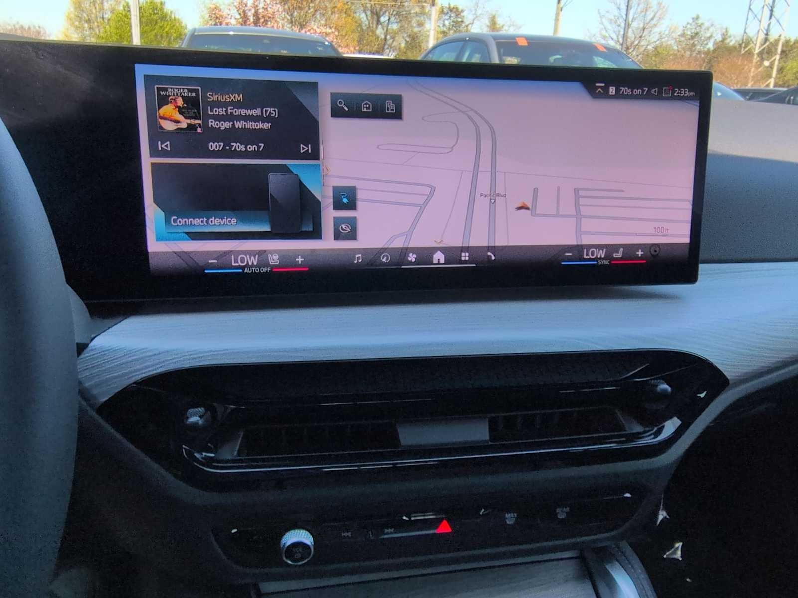 Connected Package Pro, Driving Assistance Package, M Sport Package (Aerodynamic Kit, Black Mirror Caps, M Sport Brakes w/Blue Calipers, M Steering Wheel, Shadowline Exterior Trim, Wheels: 19 x 8.5 Fr & 19 x 9.0 Rr M Aero, and Without Lines Designation Outside), M Sport Package (337), Parking Assistance Package (Active Park Distance Control, Parking Assistant Plus, Parking View w/3D View (Surround View), and Rear-View Camera), Premium Package (BMW Curved Display w/HUD, harman/kardon Surround Sound System, Heated Steering Wheel, and Iconic Sounds Electric), 4-Wheel Disc Brakes, ABS brakes, Active Cruise Control, Adaptive suspension, Air Conditioning, Alloy wheels, Apple CarPlay & Android Auto Compatibility, Audio memory, Auto High-beam Headlights, Auto-dimming door mirrors, Auto-dimming Rear-View mirror, Automatic temperature control, BMW Assist eCall, BMW TeleServices, Brake assist, Brake Calipers, Bumpers: body-color, Compass, ConnectedDrive Services, Delay-off headlights, Driver door bin, Driver vanity mirror, Dual front impact airbags, Dual front side impact airbags, Electronic Stability Control, Emergency communication system: BMW Assist eCall, Enhanced Premium Sound System, Exterior Parking Camera Rear, Four wheel independent suspension, Front anti-roll bar, Front Bucket Seats, Front Center Armrest, Front dual zone A/C, Front reading lights, Fully automatic headlights, Garage door transmitter, Genuine wood console insert, Genuine wood dashboard insert, Heated door mirrors, Heated Front Seats, Heated front seats, Hi-Fi Sound System, HVAC memory, Illuminated entry, Knee airbag, Leather steering wheel, Low tire pressure warning, Lumbar Support, Memory seat, Navigation, Navigation system: BMW Maps Navigation, Occupant sensing airbag, Outside temperature display, Overhead airbag, Overhead console, Panic alarm, Passenger door bin, Passenger vanity mirror, Perforated Sensatec Upholstery, Personal eSIM 5G, Power door mirrors, Power driver seat, Power Front Seats, Power Liftgate, Power moonroof, Power passenger seat, Power steering, Power windows, Radio data system, Radio: FM Audio System, Rain sensing wipers, Rear anti-roll bar, Rear reading lights, Rear seat center armrest, Rear window defroster, Remote keyless entry, Security system, SiriusXM Satellite Radio w/1 Year Subscription, Speed control, Speed-sensing steering, Speed-Sensitive Wipers, Split folding rear seat, Sport Seats, Sport steering wheel, Steering wheel mounted audio controls, Telescoping steering wheel, Tilt steering wheel, Traction control, Trip computer, Turn signal indicator mirrors, Variably intermittent wipers, Wheels: 18 x 7.5 Aero Gunmetal Grey, Wheels: 19 x 8.5 Fr & 19 x 9.0 Rr M Bicolor, and Widescreen Display.
