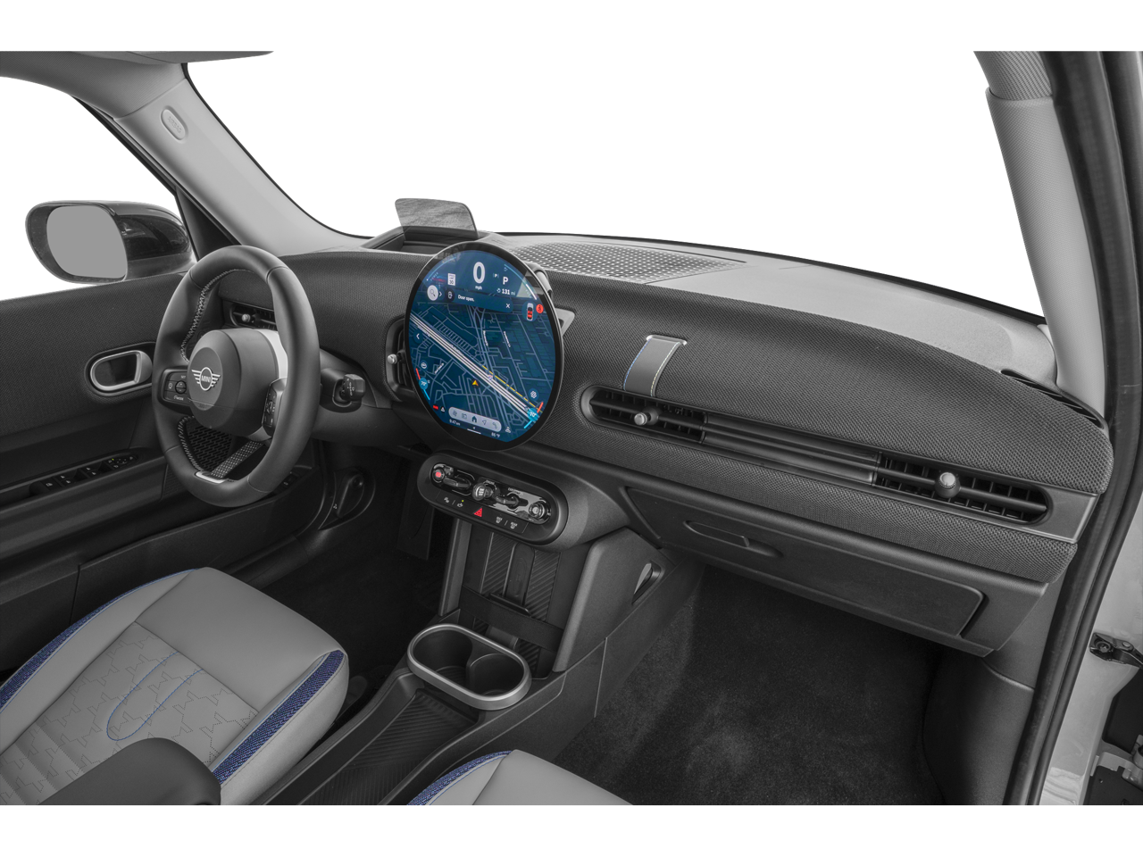 Comfort Package (Auto-Dimming Interior & Exterior Mirrors, Auto-Dimming Rear-View Mirror, Comfort Access Keyless Entry, and Wireless Device Charging), Comfort Package Plus (MINI Navigation AR and Parking Assistant Plus), Favoured Style (Body Color Roof, Favoured Trim Specific Additional Contents, Headliner in Anthracite, John Cooper Works Sport Seats, Sports Steering Wheel, Vescin Upholstery, and Wheels: 17 x 7 U-Spoke Vibrant Silver (1KF)), Iconic Trim (ACC Stop & Go + Active Driving Assistant, Active Driving Assistant, harman/kardon Surround Sound System, and Interior Camera), 4-Wheel Disc Brakes, 6 Speakers, ABS brakes, Active Driver Seat w/Lumbar Support, Air Conditioning, Alloy wheels, AM/FM radio: SiriusXM, AM/FM Stereo, Apple CarPlay Compatibility, Auto High-beam Headlights, Auto-dimming door mirrors, Auto-dimming Rear-View mirror, Automatic temperature control, Blue Multitone Roof, Brake assist, Bumpers: body-color, Classic Trim Specific Additional Content, Delay-off headlights, Driver door bin, Driver vanity mirror, Dual front impact airbags, Dual front side impact airbags, Electronic Stability Control, Emergency communication system: MINI Assist eCall, Exterior Parking Camera Rear, Four wheel independent suspension, Front anti-roll bar, Front Bucket Seats, Front Center Armrest w/Storage, Front dual zone A/C, Front reading lights, Fully automatic headlights, Headliner In Grey, Heads-Up Display, Heated door mirrors, Heated Front Seats, Heated front seats, Heated steering wheel, Illuminated entry, Knee airbag, Leather steering wheel, Low tire pressure warning, MINI Assist eCall, MINI Connected, MINI Navigation, MINI TeleServices, Navigation System, Occupant sensing airbag, Outside temperature display, Overhead airbag, Overhead console, Panic alarm, Passenger door bin, Passenger vanity mirror, Power door mirrors, Power Front Seats, Power moonroof, Power steering, Power windows, Radio data system, Rain sensing wipers, Rear anti-roll bar, Rear window defroster, Rear window wiper, Remote keyless entry, SiriusXM Satellite Radio w/1 Year Subscription, Speed control, Speed-sensing steering, Speed-Sensitive Wipers, Split folding rear seat, Spoiler, Sport Seats, Sport steering wheel, Steering wheel mounted audio controls, Tachometer, Telescoping steering wheel, Tilt steering wheel, Traction control, Trip computer, Variably intermittent wipers, Vescin/Cloth Upholstery, Wheels: 17 x 7 U-Spoke Grey, and Wheels: 18 x 7 Night Flash Spoke Two-Tone.