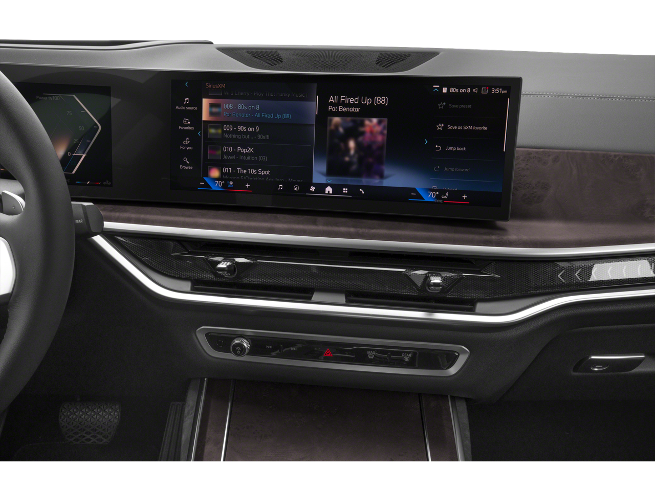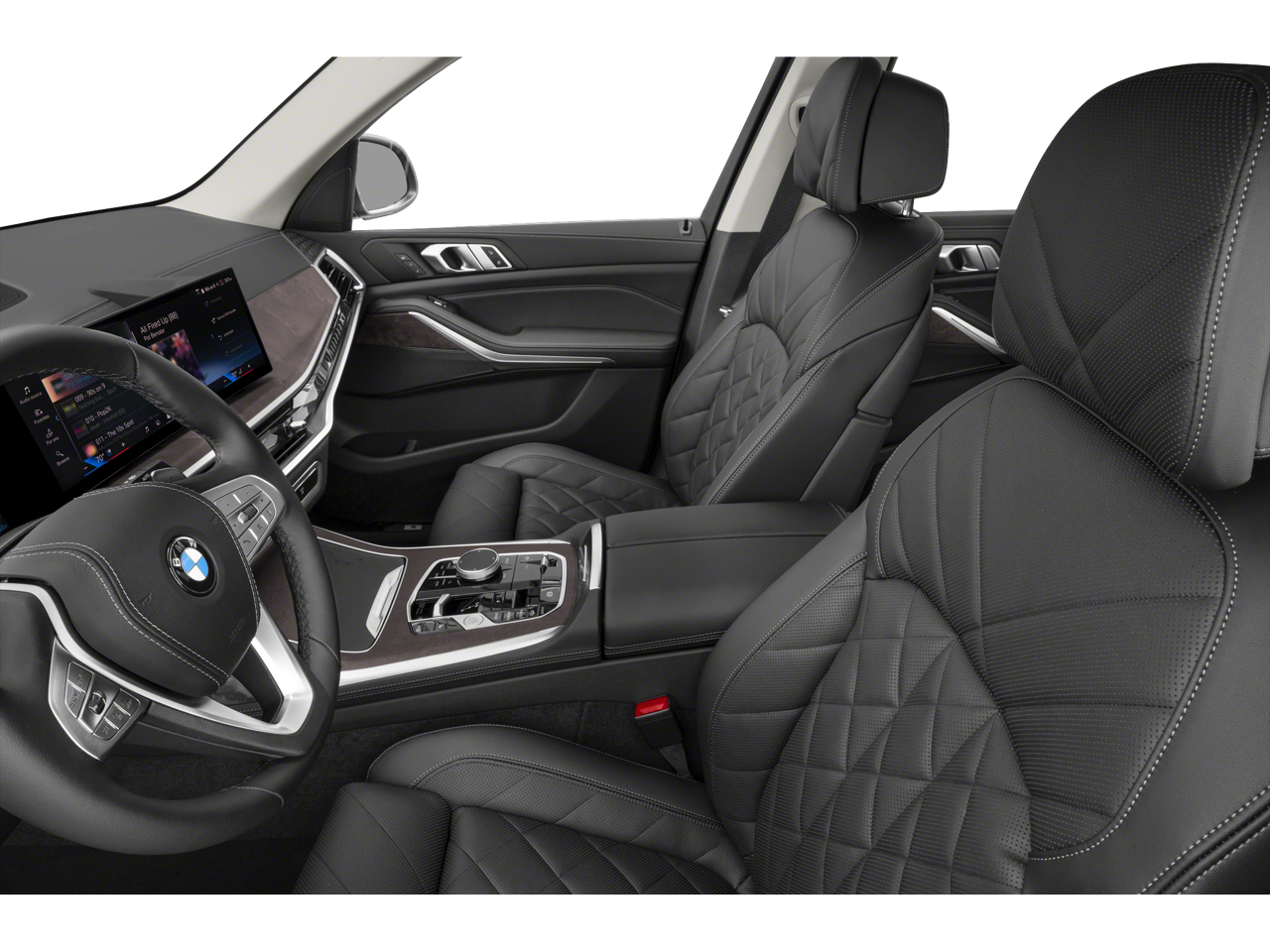 Climate Comfort Package (5-Zone Automatic Climate Control, Front and Rear Heated Seats, and Front Ventilated Seats), Connected Package Pro, Premium Package (Electric Rear Side Window Shades, Harman/Kardon Surround Sound System, and Soft-Close Automatic Doors), 3rd row seats: split-bench, 4-Wheel Disc Brakes, ABS brakes, Adaptive suspension, Air Conditioning, Alloy wheels, AM/FM radio: SiriusXM with 360L, AM/FM Stereo, Apple CarPlay and Android Auto Compatibility, Apple CarPlay Compatibility, Auto High-beam Headlights, Auto tilt-away steering wheel, Auto-dimming door mirrors, Auto-dimming Rear-View mirror, Auto-leveling suspension, Automatic temperature control, BMW Assist ECall, BMW TeleServices, Brake assist, Bumpers: body-color, Compass, ConnectedDrive Services, Delay-off headlights, Driver door bin, Driver vanity mirror, Dual front impact airbags, Dual front side impact airbags, Electronic Stability Control, Emergency communication system: BMW Assist eCall, Enhanced Premium Sound System, Exterior Parking Camera Rear, Four wheel independent suspension, Front anti-roll bar, Front Bucket Seats, Front Center Armrest, Front dual zone A/C, Front reading lights, Fully automatic headlights, Garage door transmitter, Genuine wood console insert, Genuine wood dashboard insert, Genuine wood door panel insert, Head restraints memory, Heads-Up Display, Heated door mirrors, Heated front seats, Heated Multi-Contour Seats, Heated steering wheel, Hi-Fi Sound System, Illuminated entry, Knee airbag, Leather steering wheel, Live Cockpit Pro, Low tire pressure warning, Memory seat, Navigation system: BMW Maps Navigation, Occupant sensing airbag, Outside temperature display, Overhead airbag, Panic alarm, Passenger door bin, Passenger vanity mirror, Personal ESIM 5G, Power adjustable front head restraints, Power door mirrors, Power driver seat, Power Front Seats, Power moonroof, Power passenger seat, Power steering, Power windows, Radio data system, Rain sensing wipers, Rear air conditioning, Rear anti-roll bar, Rear dual zone A/C, Rear reading lights, Rear seat center armrest, Rear window defroster, Rear window wiper, Reclining 3rd row seat, Remote keyless entry, Security system, Sensafin Upholstery with Decor Stitching, SiriusXM with 360L and 1 Year Trial Subscription, Speed control, Speed-sensing steering, Speed-Sensitive Wipers, Split folding rear seat, Spoiler, Sport steering wheel, Steering wheel memory, Steering wheel mounted audio controls, Tachometer, Telescoping steering wheel, Tilt steering wheel, Traction control, Trip computer, Turn signal indicator mirrors, Variably intermittent wipers, Wheels: 21 x 9.5 Y-Spoke Black, and Wireless Charging Device.